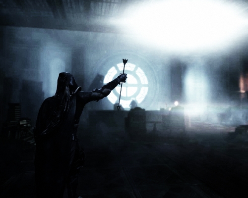 He goes back to the clock tower and we get an interesting conversation between him and the Queen of the Beggars. How she got into the tower is a mystery. She shows just how astute and observant she really is uttering one of the more iconic phrases in the entire game. “In order to be alone, you must have something to be alone from.” It’s obvious that Garrett doesn’t want to acknowledge this but he knows she is right. He has to get the the Ceremonial chamber and to Erin before Orion accidentally kills her and in doing so destroys the city. He arrives as Orion is beginning the cleansing ceremony using Erin’s blood to heal people of the gloom and dooming them to an even worse fate. Garrett’s proximity to Erin causes his head to ache most likely due to the fragment in his eye. Erin wakes and using the primal freezes time so that Garrett can get to the altar and Orion. Garret steals the amulet they are using to anoint the suffers and time starts again. Orion is shocked and tries to appeal to Garrett, but ends up grabbing Erin and dragging her away. She screams and releases a wave of energy sending everyone including Garrett flying away from the altar.